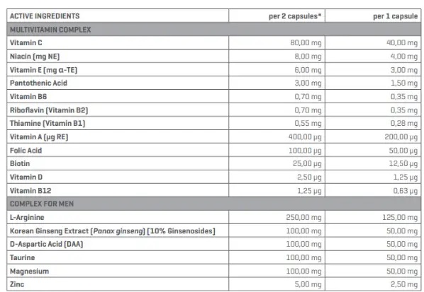 MULTIVITAMIN FOR MEN обогащен L-аргинином, экстрактом корейского женьшеня, DAA и таурином.